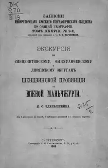 - Экскурсия по Синцзинтинскому, Фынхуанченскому и Ляоянскому округам Шенцзинской провинции в Южной Маньчжурии. — СПб., 1906.