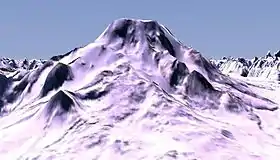 ![]() Компьютерное моделирование вулкана Эдзиза. Вид с севера. Снимок НАСА. | |