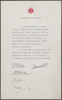 | Отречение | 11 декабря 1936 |