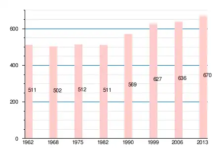 Население коммуны в 2011 году составляло 643 человека[6], в 2012 году — 657 человек[7], а в 2013-м — 670 человек[5].