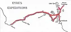 В 1840 году Эйр предпринял новое путешествие, задачей которого было проведение разведки пути к Перту на западном побережье континента. Во время следования он обнаружил, что озеро Торренс, за год до того весьма многоводное, практически полностью высохло. Пройдя на север ещё дальше, чем в предыдущий раз, Эйр нашёл ещё одно озеро, впоследствии названное его именем. Вернувшись к заливу Спенсер, по пути осмотрев систему озёр Эверард—Грегори, Эйр пересёк полуостров (который также был назван его именем), на котором обнаружил невысокий хребет Голер, и вышел к Большому Австралийскому заливу в районе бухты Стрики. Оттуда Эйр двинулся вдоль побережья на запад. После трудного путешествия, осложнённого крайним недостатком пресной воды, он 30 июня 1841 года вышел к посёлку Олбани в бухте Кинг-Джордж на южной оконечности Западной Австралии, откуда морем вернулся в Аделаиду.