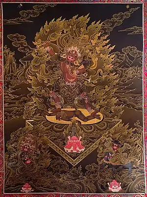 Согласно тибетским легендам, она была бонской богиней неба, чей правый глаз был пронзён мастером тантры Падмасамбхавой, чтобы она могла более эффективно помогать ему покорять тибетских демонов. Она считается одним из трёх основных защитников школы Ньингма линии наряду с Рахулой и Ваджрасадху.