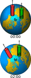 Угол наклона оси прямого восхождения по отношению к поверхности Земли равен географической широте места, в котором установлен телескоп. На географическом полюсе она должна быть направлена перпендикулярно земной поверхности, а на экваторе — параллельно.