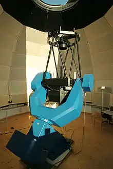 - Непригодность для крупных инструментов. С увеличением размера телескопа, сложность и масса экваториального подвеса быстро растёт, достигая, а в некоторых случаях и превышая массу конструкции собственно телескопа. Кроме того, в крупных инструментах заметную роль начинают играть искривления массивных зеркал под влиянием силы тяжести. Экваториальная монтировка, в которой зеркало может находиться, в сущности, под любым углом к направлению притяжения Земли, делает учёт этих искривления значительно более сложным, чем в альт-азимутальной монтировке, где изменяется всего лишь один угол.