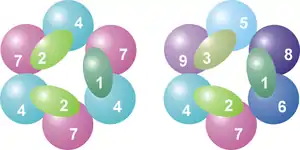 Поверх этих кольцевых белков располагаются три белка, содержащих РНК-связывающие домены S1. У двух из трёх этих белков, кроме того, имеется К-гомологичный домен[7]. У эукариот все три этих S1-содержащих белка различны, а у архей они представлены белками одного или двух различных видов, хотя во всех случаях к кольцу прикрепляется только три субъединицы[11].