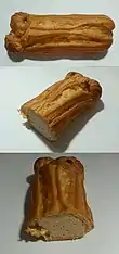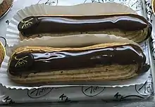 Экле́р (от фр. éclair — молния, вспышка) — пирожное в виде трубочки из заварного теста, покрытой помадкой, с начинкой из сливочно-масляного или заварного крема[2][1]. Создание эклера приписывается французскому кулинару Мари-Антуану Каре́му. Получил распространение в XIX веке. Одним из первых упоминаний в англоязычной литературе является рецепт в книге «Boston Cooking School Cook Book» 1884 года[3].