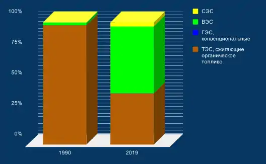 Сокращения: ТЭС - тепловая электростанция; ГЭС - гидроэлектростанция; ВЭС - ветряная электростанция; СЭС - солнечная электростанция