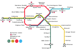 Единственный на сегодняшний день метрополитен в Дании расположен в Копенгагене, он имеет следующие характеристики: это один из самых поздних метрополитенов Европы, позже в европейских городах метрополитен открывался только в Казани в 2005 году. Копенгагенский метрополитен работает круглосуточно, но даже по западноевропейским меркам очень дорог: проезд по одной тарифной зоне стоит 13,50 крон (то есть почти 130 рублей), таких тарифных зоны в нём 4. На сегодняшний день он имеет 2 линии на которых 22 станции, но в перспективе предполагается ещё несколько. Поезда в метрополитене беспилотные, состоят как правило из трёх вагонов.