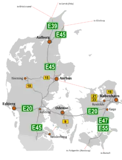 Несмотря на полное отсутствие как своего так и чужого автопрома и высокие цены на автомобили в материковой части Дании, очень хорошо развиты автодороги.