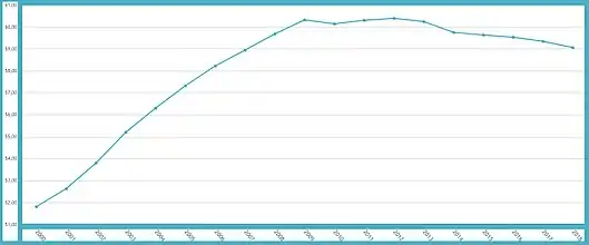 | 1981 | ▲321,3 | ▲8 453 | ▼−0,4 % | ▲14,5 % | ▲13,8 % | ▲20,0 % |
