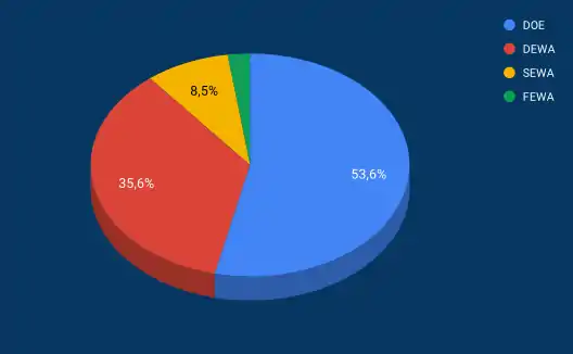 - Аббревиатуры компаний: DoE - Department of Energy- Abu dhabi; DEWA - Dubai Electricity & Water Authority; FEWA - Federal Electricity & Water Authority; SEWA - Sharjah Electricity & Water Authority