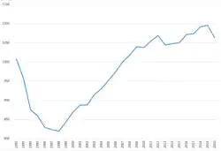 | 1995 | 1429 | ▼1309,085 | ▲335,777 | ▼8827,932 | ▲2264,343 | ▼−4,1 % | ▲197,3 % | ▼9,4 % | н/д |