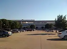 Международный аэропорт Даллас/Форт-Уэрт, расположенный почти на равном расстоянии от даунтаунов Далласа и Форта-Уэрт, является крупнейшим аэропортом в штате, вторым по величине в США, и четвёртым по величине в мире.[21] С точки зрения трафика, Даллас является самым загруженным в штате, третьим в США и шестым оживленных в мире. Аэропорт обслуживает 135 внутренних рейсов и 40 международных. Даллас является крупнейшим и основным узловым аэропортом компании American Airlines и одним из крупнейших в мире по транспортировке пассажиров-миль и размеру пассажирского флота.