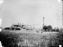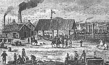 Первая железная дорога длиной 10 км открылась в 1854 году[63]. К 1885 году общая протяжённость путей составляла 4 300 км[63]. Новый вид транспорта позволил привозить в столицу пампасский скот, где тот умерщвлялся и перерабатывался. Оттуда продукция преимущественно британских мясоперерабатывающих предприятий экспортировалась во многие регионы мира[64]. Засилье частных британских компаний, осуществлявших экспорт товаров из Аргентины, не устраивало патриотически настроенные круги[65]. Другие считали, что уклад соответствовал национальным интересам. Эксклюзивная роль порта Буэнос-Айреса оспаривалась[65].