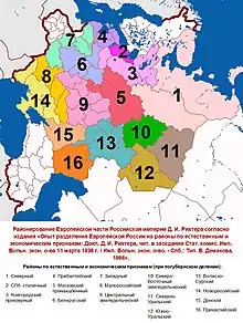 В 1898 году российский статистик и географ Дмитрий Иванович Рихтер опубликовал работу «Опыт разделения Европейской России на районы по естественным и экономическим признакам» («Труды ВЭО», 1898); к той же теме он вернулся в сборнике, изданном в честь И. А. Стебута в 1904 году.