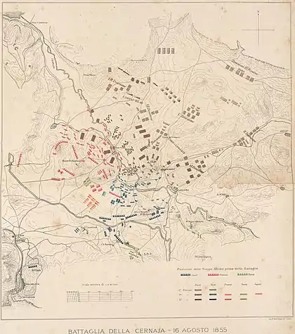 Первый случай холеры среди пьемонтских войск произошёл уже 11 мая 1855 при переходе в район операций, увеличиваясь с высадкой войск и превратился в настоящую эпидемию, когда в Камаре был разбит постоянный лагерь. Военные действия начались 25 мая, когда бригады Фанти, Молларда и Ансальди при поддержке двух полков (лансиеров и гусар) и двух английских кавалерийских батальонов под командованием Алессандро Ла Мармора[2] участвовали в занятии Камары, где был создан лагерь. 29 мая была создана специальная больница для заразившихся, которых 7 июня былo уже 869, из которых 383 умерли. Во время кампании сардинская армия активно участвовала в битве при Чёрной речке, потеряв 23 погибшими, 155 ранеными и 2 пропавшими без вести. Генерал Алессандро Ла Мармора скончался 7 июня 1855 года из-за болезни, его заменяли генерал-лейтенант Ардинго Тротти, 28 июня лорд Раглан и 2 июля генерал Джорджио Ансальди.