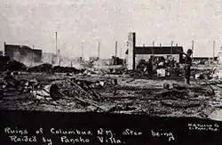 В ответ армия Соединённых Штатов предприняла интервенцию (Мексиканская экспедиция) на территорию Мексики и попыталась найти и захватить Вилью, действовавшего на севере этой страны. 16 марта 1916 года 8-тысячный экспедиционный корпус США, состоявший из одной пехотной и двух кавалерийских бригад, пересёк американо-мексиканскую границу. Также в своём распоряжении американцы имели 8 аэропланов JN-3. Командовал карательной экспедицией генерал Джон Першинг. В первый день американцы преодолели 68 миль, остановившись в колонии мормонов Дублан в штате Чиуауа. Венустиано Карранса приказал своим подчинённым не оказывать войскам США сопротивления, но и не содействовать им[7].