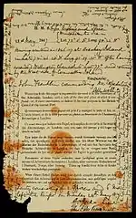 В апреле 1859 года санные партии отправились с борта Fox, чтобы произвести поиски на земле острова Кинг-Уильям. 5 мая партия во главе с лейтенантом Королевских военно-морских сил Уильямом Хобсоном в сложенной из камней пирамиде нашла документ, оставленный Крозье и Фитцджеймсом[46]. Он состоял из двух сообщений. Первое, датируемое 28 мая 1847 года, гласило[47]: