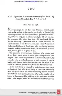 - Cavendish, H (1 gener 1798). “Experiments to Determine the Density of the Earth. By Henry Cavendish, Esq. F. R. S. and A. S.”. Phil. Trans. R. Soc. Lond. 88: 469—526. DOI:10.1098/rstl.1798.0022. Проверьте дату в