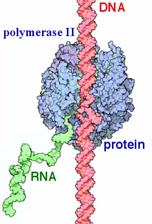 У прокариот и эукариот гены представляют собой последовательности нуклеотидов ДНК. На матрице ДНК происходит транскрипция — синтез комплементарной РНК. Далее на матрице мРНК происходит трансляция — синтезируются белки. Существуют гены, кодирующие нематричную РНК (например, рРНК, тРНК, малые РНК), которые экспрессируются (транскрибируются), но не транслируются в белки.