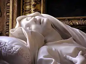 Капелла Палуцци-Альбертони, спроектированная Джакомо Мола в 1622—1625 годах расположена в левом «рукаве» трансепта церкви. Произведение Бернини часто сравнивают с другим его шедевром — композицией «Экстаз святой Терезы» в римской церкви Санта-Мария-делла-Витториа (1645—1652). Позади скульптуры находится картина Джованни Баттисты Гаулли с изображением Девы Марии с Младенцем и Святой Анны. По сторонам — скульптурные головки херувимов. Из невидимого зрителю окна слева льются потоки света, которые усиливают мистическое впечатление от скульптуры из белоснежного отполированного каррарского мрамора и цветного мрамора покрывала саркофага. На боковых пилонах, предваряющих капеллу, расположены фрески с изображениями святой Клары Ассизской и самой блаженной Людовики, дающей милостыню нищему.