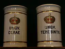 - Официнальная мазь (лат. officina — аптека) — мазь, рецепт которой написан в Фармакопее, и которую обычно готовят в экстемпоральных условиях в небольших количествах на продажу. Например, серная мазь. К официнальным прописям также относятся капли в нос с протарголом, порошки «Антигриппин» и проч.