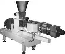 Экструдирование — процесс происходящий в стволе экструдера, при котором происходит механическое перемалывание за счёт трения, высокотемпературное воздействие при высоком давлении на кормовое сырьё (температура от 110 до 160 градусов и давление от 20 до 30 атмосфер). В процессе такого воздействия, происходит расщепление сложных углеводов на простые сахара, что обеспечивает существенное улучшение органолептических показателей корма, а также повышает усваиваемость кормов (от 45 % при традиционных видах обработки до 95 %).