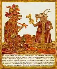 Среди персонифицированных эксцентрических образов русского народного творчества можно выделить сказочного Ивана-дурака и балаганного потешника-пересмешника Петрушку. Если первому отводится роль доброго, мудрого, благородного героя-спасителя от разных враждебных напастей и жестоких правителей[11], то второй призван был высмеивать существующий порядок вещей, преувеличивая яркость изображаемых пороков остротами, дурачествами и кривляньями.[12]