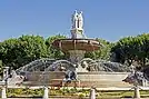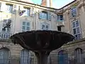 - Фонтан на Площади д’Альберта (фр. Fontaine de la Place d’Albertas): одно из самых туристически привлекательных мест города, которое почти не имеет собственной истории. Его металлические украшения, отлитые учениками Школы ремёсел, датируются лишь 1912 годом. В действительности, ценность круглому фонтану придаёт привлекательный архитектурный ансамбль самой площади. Она была построена в шестилетний срок (1735—1741) по указанию Жана-Батиста д’Альберта, на улице Эспариа (фр. rue Espariat), напротив особняка, в котором он жил. Площадь с трёх сторон окружена небольшими особняками, иллюстрирующими намерение вельможи освободить пространство перед входом в свой собственный особняк и привести к некоему единству ансамбль. Красоту этому месту придаёт удивительная гармония линий: горизонтальные линии стен с просечками ложных швов на первом этаже и линии лепного орнамента на верхних этажах, вертикальные линии пилястров, окаймляющих второй и третий этажи. Ж.-Б. д’Альберт, председатель Счётной палаты, был убит в 1790 году Анисе Мартелем, приговорённым затем к колесованию и казнённым на дворцовой площади. Его скелет был помещён в один из залов масонской ложи.
