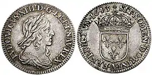 В 1641 году выпущен первый серебряный экю (ecu d’argent, ecu blanc), напоминающий талер.