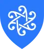 Герб: в центре синего геральдического щита изображена серебряная продублированная тренога.