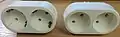 Разветвители на два посадочных места. Слева — заземлённый, справа — обычный