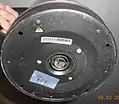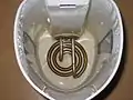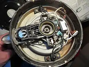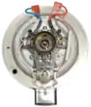 Донная часть электрического чайника с дисковым нагревательным элементом со снятым контроллером (вид снизу — со стороны контактной группы)
