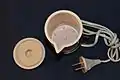 Пластмассовая электрическая кружка-чайник с несъёмным кабелем и крышка от него (СССР)
