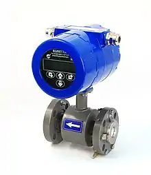 Электромагнитный расходомер — измерительный прибор, предназначенный для измерения объемного или массового расхода жидкостей, в основе работы которого лежит закон электромагнитной индукции Фарадея. Получил распространение для измерения расхода воды, водных растворов и суспензий.