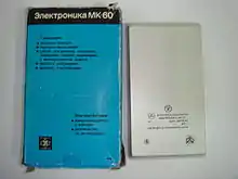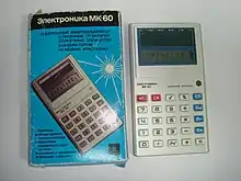 Электроника МК-60 — первый советский калькулятор с питанием на солнечных элементах. Выпускался с 1982 года, продавался по цене 45 рублей. Калькулятор выполняет четыре арифметические операции, смену знака числа, извлечение квадратного корня, вычисление процентных отношений, операции с памятью, коррекцию ошибочно введенного числа. В калькуляторе предусмотрено отключение питания через 10-20 минут простоя.