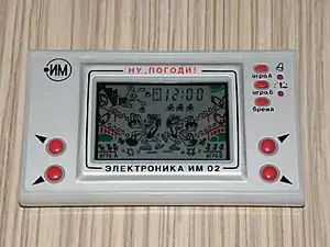 - «Ну, погоди!» — самая первая игра из серии однотипных игр «Ну, погоди!». Описана в бюллетене «Новые товары» № 12 1984. Не имела обозначения серии. Микропроцессор: КБ1013ВК1-2, дисплей ИЖМ 2-71-01 (или ИЖМ13-71).