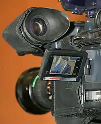 Современные профессиональные видеокамеры для тележурналистики оснащаются обоими типами видоискателя: окулярным и откидным плоским. При этом окулярный видоискатель, как правило, чёрно-белый, и используется при съёмке с плеча. Второй служит вспомогательным цветным монитором, который более удобен при работе со штатива. Видеокамеры модульной конструкции могут оснащаться различными типами электронного визира, в зависимости от выполняемой задачи. В студийном варианте присоединяется студийный видоискатель с диагональю экрана не менее 6 дюймов[2], в плечевом — окулярный с экраном 1,5 дюйма[3]. Независимо от типа во всех видоискателях профессиональных камер присутствует электронная разметка зон отображения. Кроме того, обязательной функцией является индикация пересветки (так называемая «зебра»), отображающая «пробитые» участки изображения в виде площадок из чёрно-белых полос, наклонённых под углом 45°.