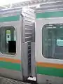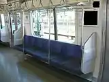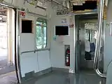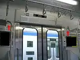 - Над дверью имеется информационное LED-табло, выводящие название станций в кандзи, катакане и ромадзи. На некоторых модификациях установлен жидкокристаллический цветной дисплей для показа различной информации (изменения расписания, предупреждения, реклама).