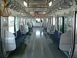 Отделка салона представляет из себя белый пластик и глянцевую нержавеющую сталь. Сиденья обиты синей тканью, на полу серый линолеум из ПВХ. Сиденья расположены параллельно стене салона. С 2003 года для улучшения комфорта внедрены мягкие сиденья. Каждая группа сидений расположена между дверными проёмами по обе стороны борта. Кроме того, в каждом вагоне имеется места для инвалидных колясок. В головных и шестидверных вагонах сиденья складываются, что позволяет увеличить вместимость в часы пик.