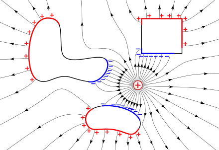 Весьма важным оказывается свойство проводящей замкнутой поверхности, находящейся в соединении с землёй. Такая замкнутая поверхность является экраном, защитой для всего пространства, заключённого внутри неё, от влияния каких угодно электрических зарядов, расположенных с внешней стороны поверхности. Вследствие этого электрометры и другие измерительные электрические приборы окружаются обыкновенно металлическими футлярами, соединяемыми с землёй. Опыты показывают, что для таких электрических экранов нет надобности употреблять сплошной металл, вполне достаточно эти экраны устраивать из металлических сеток или даже металлических решёток.