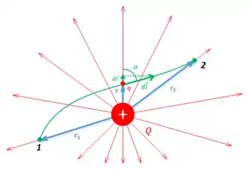 Тогда, с учётом закона Кулона, работа, совершаемая полем заряда , при перемещении пробного заряда равна:
