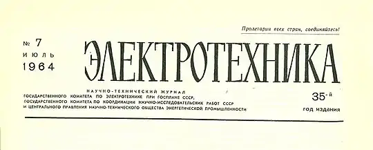 ![]() Обложка журнала «Электротехника». 1964 год | |