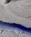 Часть борозд нагорья Элизиум. Голубой цвет отмечает области возможного сезонного выпадения инея.