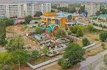 ![]() Возведение Кафедрального Собора святых равноапостольных Кирилла и Мефодия в общественном центре восточного жилого района города в середине августа 2017 года |