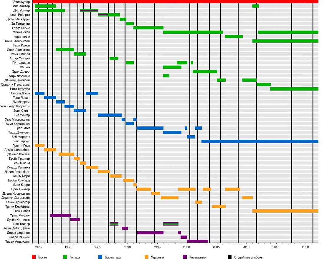 Constrictor и Raise Your Fist and Yell были записаны с гитаристом Кейном Робертсом и бас-гитаристом Кипом Вингером. Оба музыканта покинули группу в 1988 году (хотя Кейн принял участие в песне «Bed of Nails» в альбоме 1989 года Trash). Робертс занялся сольным творчеством, а Вингер создал группу «Winger».