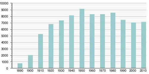 Население города по возрастному диапазону распределилось следующим образом: 20,9 % — жители младше 18 лет, 6,0 % — между 18 и 21 годами, 55,5 % — от 21 до 65 лет и 17,6 % — в возрасте 65 лет и старше. Средний возраст населения — 39,6 года. На каждые 100 женщин приходилось 92,4 мужчины, при этом на 100 совершеннолетних женщин приходилось уже 88,4 мужчин сопоставимого возраста[6].