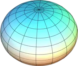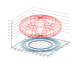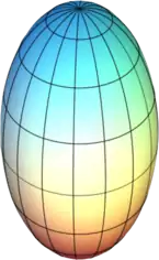 Эллипсо́ид — поверхность в трёхмерном пространстве, полученная деформацией сферы вдоль трёх взаимно перпендикулярных осей. Каноническое уравнение эллипсоида в декартовых координатах, совпадающих с осями деформации эллипсоида: