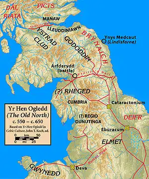 ![]() Элмет и другие бриттские королевства. 550-е — 650-е годы. |