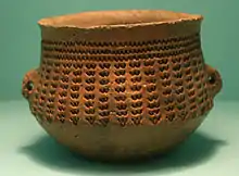 Характерными для данной культуры являются кубки с ручками, амфоры с двумя ручками, сосуды и миски с глубоко продавленным «ковровым» орнаментом.